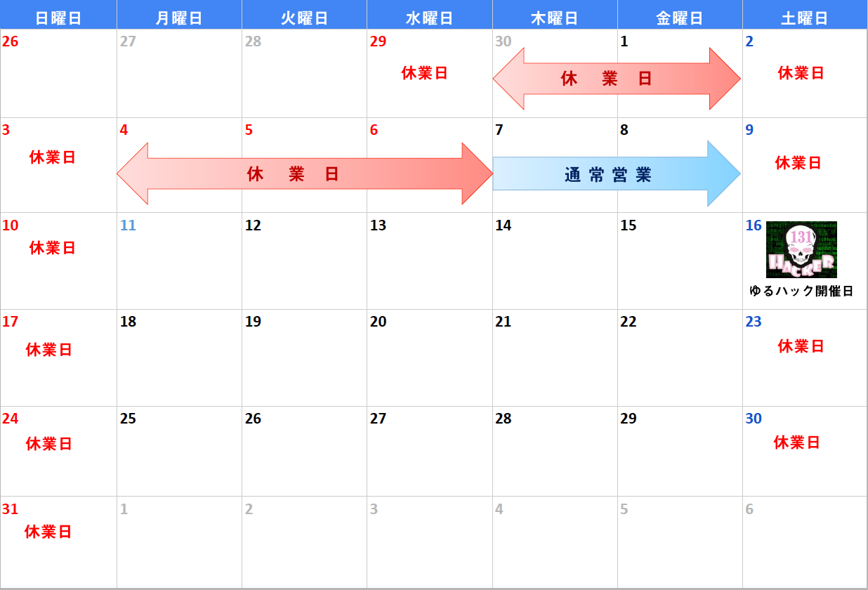 サイバーリスクディフェンダーのゴールデンウィーク休業期間は、下記の通りになります。